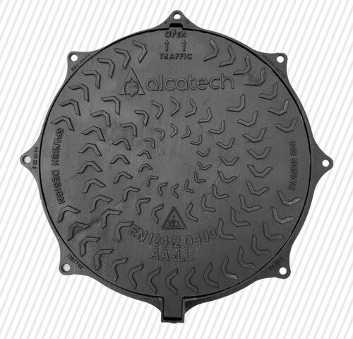 Tapa de registro con marco y tapa redonda, conforme a la norma UNI EN 124 y posee certificación de producto BSI. Superficie antideslizante y ranura lateral de enganche para la abertura con un útil común, diente de enganche para el anclaje al marco. Marco perfilado para un correcto anclaje a la zona de asentamiento.